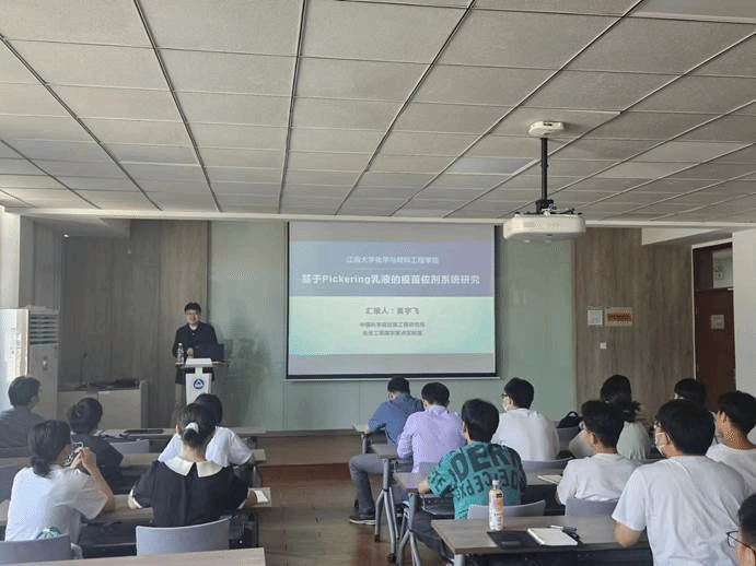 夏宇飞研究员作了“基于Pickering乳液的新型疫苗佐剂系统研究”的报告,并介绍了中科院过程工程研究所的重点研究方向。夏宇飞研究员首先简单介绍了微球科学技术促进生化工程的发展历程,以及生物分子组装与生物医学工程领域的一些主要研究方向。紧接着重点介绍了基于Pickering乳液的靶向递送系统研究,即构建了由颗粒稳定的可变形乳液,其显著提升了淋巴结递送效率和免疫应答效果,为疫苗富集淋巴结提供了新策略。最后还介绍了利用独创的颗粒化乳液技术,已在新型冠状病毒肺炎(COVID-19)重组疫苗对小鼠实验中取得了显著优于商品化铝佐剂的免疫应答效果,颗粒化铝佐剂的研究强化了新冠疫苗的体液免疫和细胞免疫应答,提升了疫苗的室温储存稳定性及生物安全性,为安全、高效的新冠疫苗佐剂构建提供了新策略。