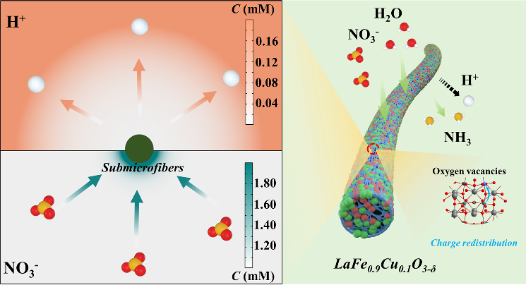 图1. LF0.9Cu0.1亚微米纤维电催化合成氨机理示意图