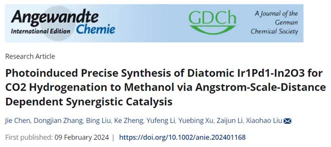 化工学院刘小浩教授团队在开创光诱导金属原子埃米尺度靶向定位合成邻近异原子位点(原子数≧2)催化剂的普适性技术应用于CO2加氢制甲醇的研究工作中取得突破性进展,这一研究成果在化学领域顶级期刊《德国应化》(Angew. Chem. Int. Ed.,2024, 63, e202401168)上发表,并被选为封面文章。该论文化工学院博士研究生陈杰为第一作者,刘小浩教授为通讯作者。
