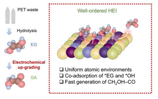 图1 长程有序高熵金属间催化剂用于废旧塑料升级设计理念