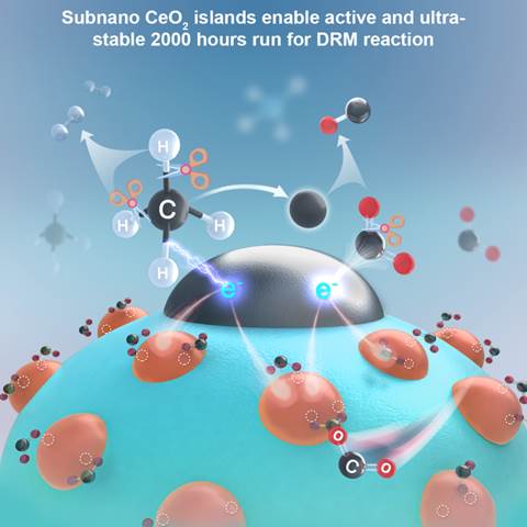 刘小浩教授团队在Cell Press细胞出版社旗下期刊Chem Catalysis上发表了题为“Strong activity-based volcano-type relationship for dry reforming of methane through modulating Ni-CeO2interaction over Ni/CeO2-SiO2catalysts”的研究论文,文章链接://doi.org/10.1016/j.checat.2024.101189。团队通过在SiO2载体上构建超细CeO2纳米岛实现了可控调节CH4解离,同时大幅强化CO2吸附与活化,加速表面的消碳反应,并有效促进积碳物种远离催化剂表面,从而实现了催化剂的高活性与超稳定性。催化剂在恒温800°C下CO2和CH4转化率分别为96%和92%,无副反应、无失活稳定运行2000小时。