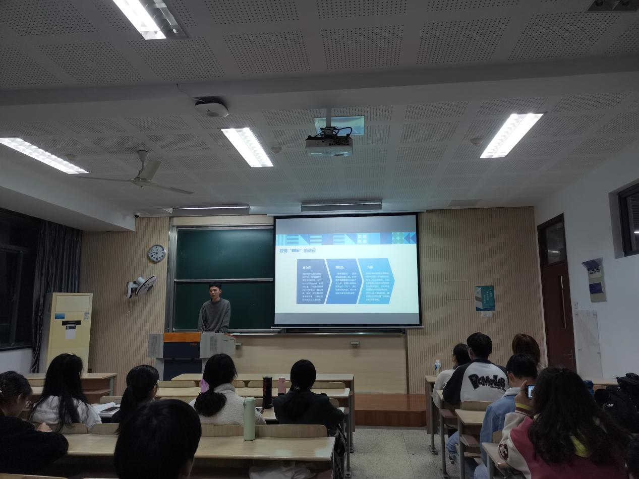 祝晗旭同学现已保研至中科院宁波材料所,他首先为同学们详细解读了保研政策中的保研要求和加分项目,鼓励大家积极参与志愿服务、培养奉献精神,还为同学们梳理了保研流程时间线,进一步对“如何获得‘offer’”、“学硕or专硕”、“硕博连读or直博”等问题进行拓展,语言风趣,干货满满。