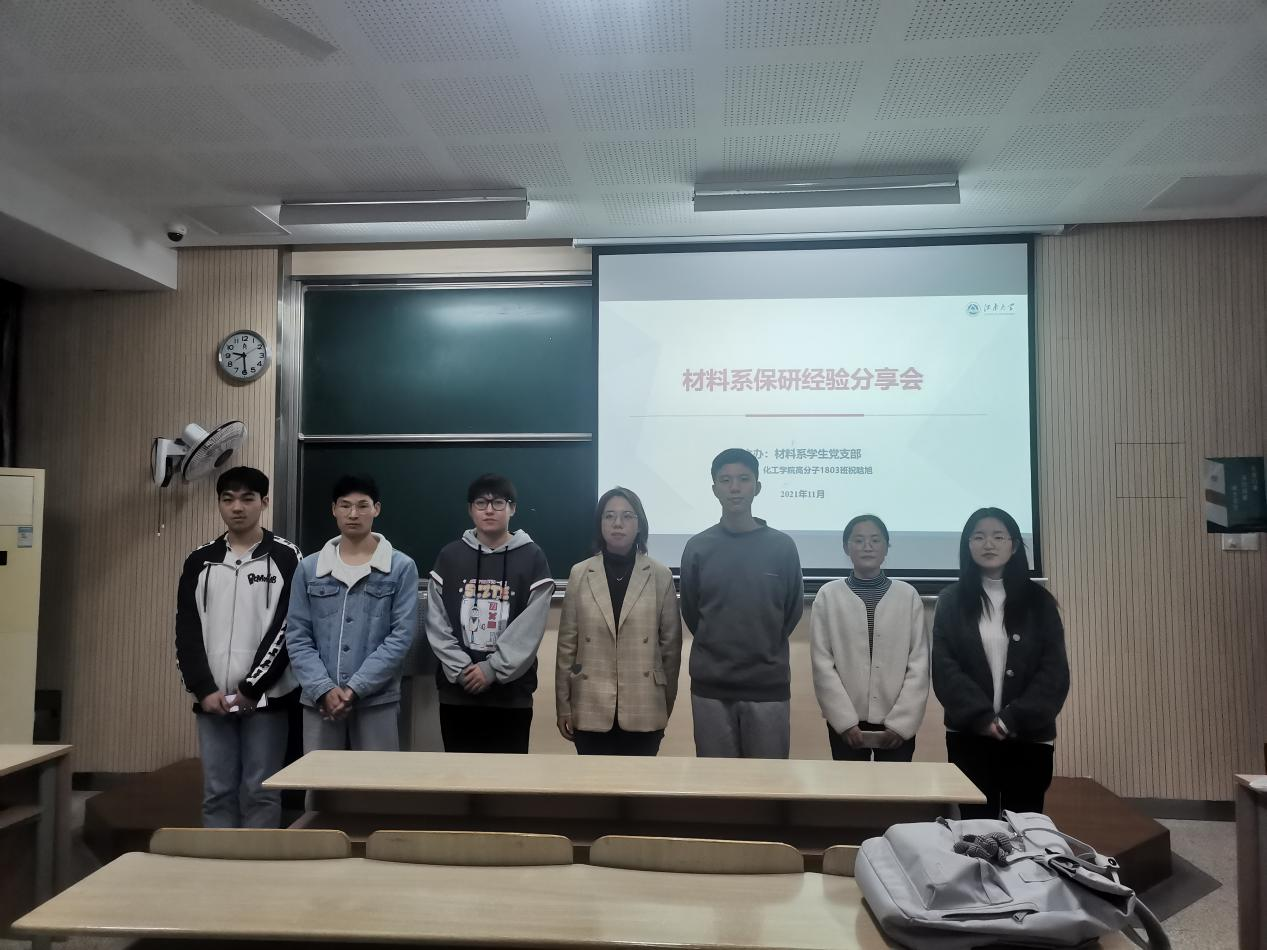 材料系学生党支部于二教2A218举办“研途有你”保研经验分享会,邀请祝晗旭、杨晓、夏远、李佳乐等优秀同学带来一堂精彩的“保研知识必修课”。