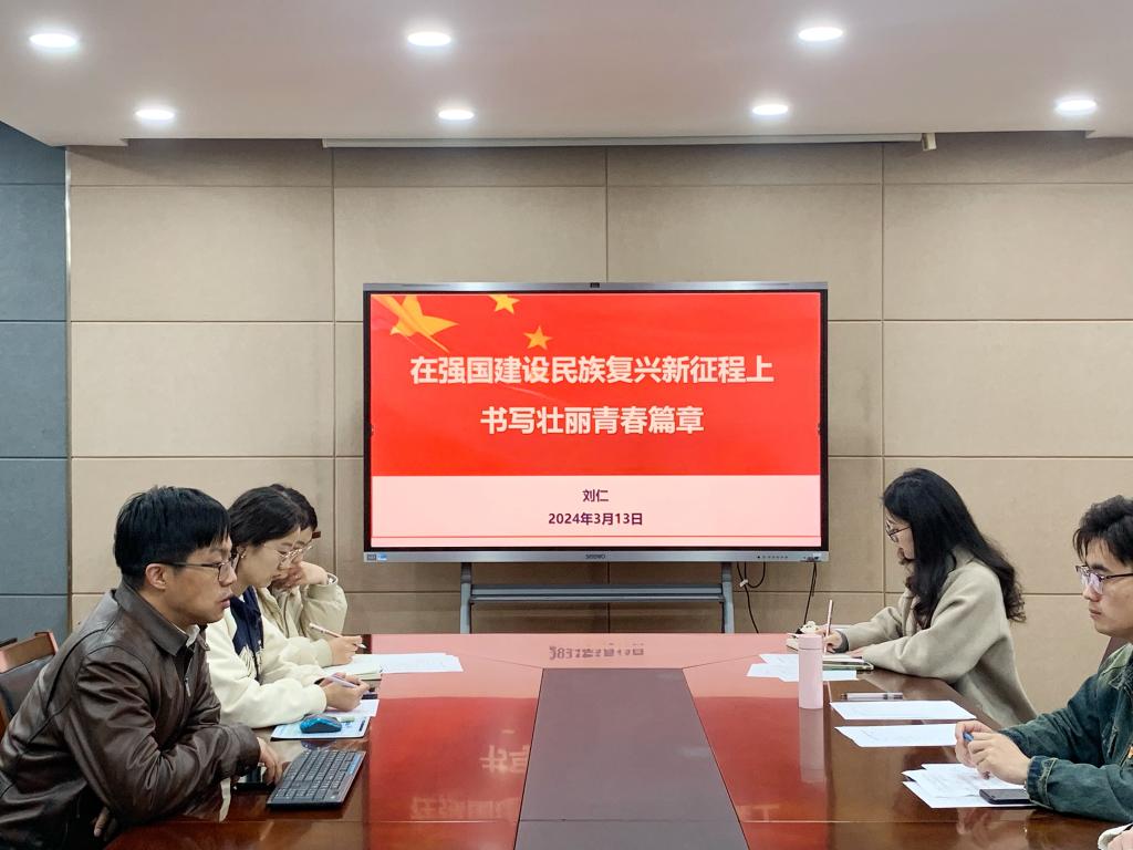 院长刘仁为化工系学生党支部党员讲授题为“在强国建设民族复兴新征程上书写壮丽青春篇章”的主题党课。学院党建辅导员杨璇、辅导员郝林青、化工系学生党支部全体党员参与了此次党课,党课由化工系学生党支部书记凌玉洁主持。