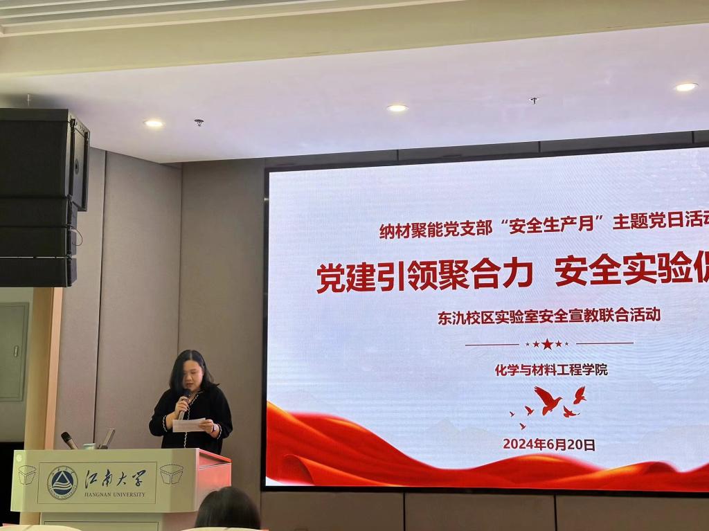 活动最后,化工学院党委副书记兼副院长董霞进行总结发言。她强调学习贯彻习近平总书记关于安全生产重要论述的重大意义。希望化工东氿校区党支部能够充分发挥党支部的战斗堡垒作用和党员的先锋模范作用,促进党建工作与安全生产深度融合,不断提升实验室安全管理水平,推动学院高质量发展。同时,希望同学们进一步提高实验室安全意识,确保在安全的环境中开展科学研究。