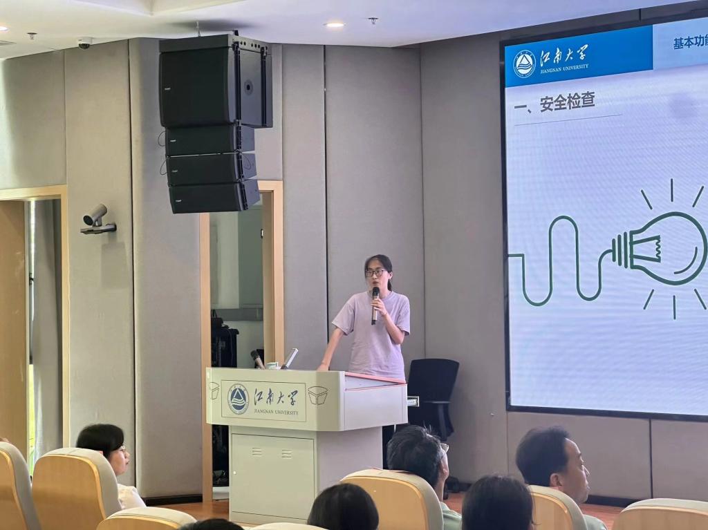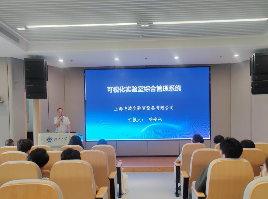 宜兴研究生院办公室副主任倪寒冰致辞,她强调实验室安全是科研工作的基石,呼吁同学们将安全意识深植心中,全面落实安全实验的各项要求,校区办也将全力做好师生在东氿校区的保障工作。随后,上海飞域实验室设备有限公司总经理杨安兴分享实验室安全管理的前沿理念,详细讲解了实验室危化品的系统管理及应急处置流程等。无锡粒子云信息科技有限公司工程师庞丽丽进行了实验室安全管理系统的现场演示,介绍了基本功能,实验室基础信息管理和危化品管理模块。通过实际操作,为现场师生答疑解惑,解决了同学们在日常使用中可能遇到的各种问题。