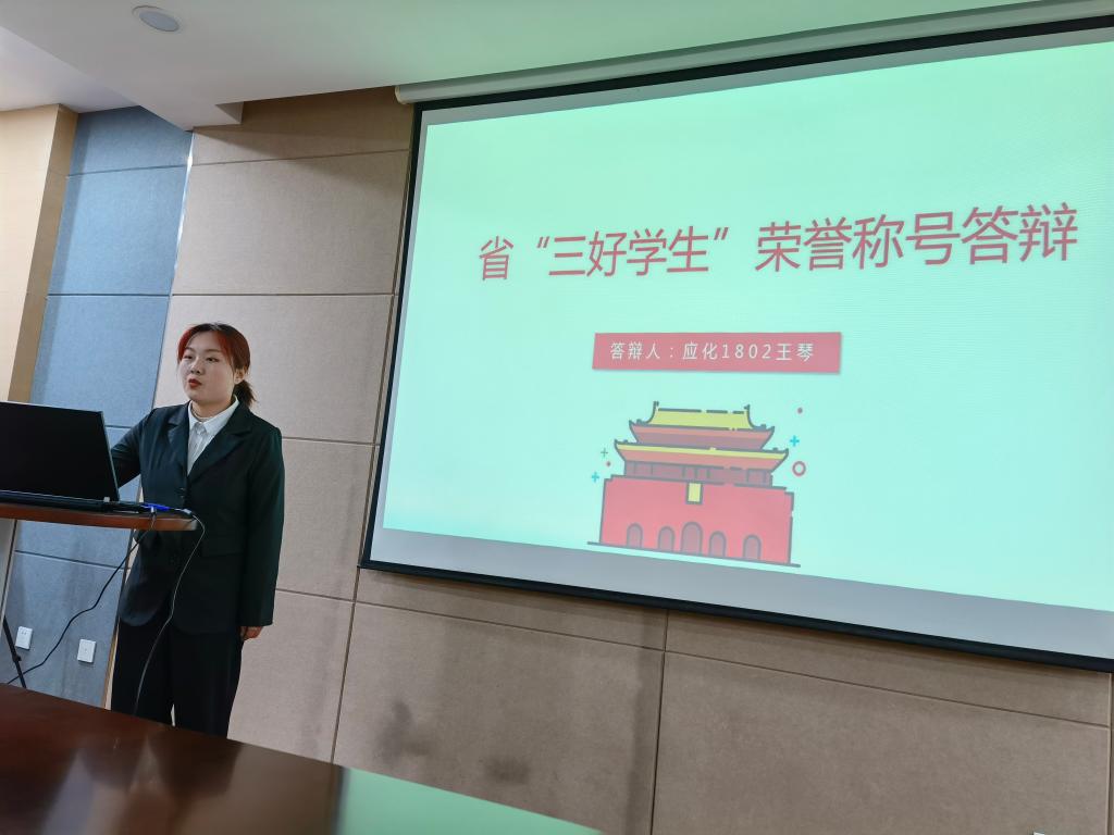 于2021年3月31日18:30在化工楼A310会议室组织开展了2021年度省级“三好学生”“优秀学生干部”答辩活动,前期经过自主报名、班级民主评议出的10名优秀学生参加了答辩。化工学院党委副书记副院长田卫平、本科18级辅导员张凯、研究生辅导员郝林青作为评委全程参加了答辩活动。