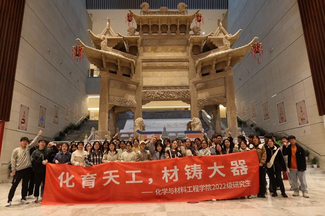 用脚步丈量大地,汲取前行力量。通过此次主题党日活动,化工学子了解了新材料新技术及材料专业领域的发展,加强了党员对党史更为深刻的认识,激发党员爱国爱党的热情和砥砺奋进新征程的勇气和信心。引导全体党员传承红色基因,坚定理想信念,汲取奋进力量,牢记一名党员的初心与使命,牢记一名化工学子的责任与担当,以专业素养争担科创强国之任,以科研能力筑牢科技兴国之梦。希望研究生党员如党的二十大主题一般,自信自强、守正创新、踔厉奋发,勇毅前进,为全面建设社会主义现代化国家、全面推进中华民族伟大复兴而团结奋斗。