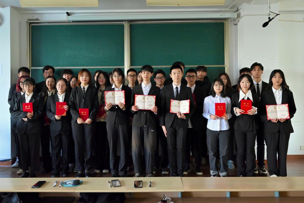 接下来,会议进行第三项——部门负责人聘任仪式。各部门负责人及主席团接受聘任书并进行了合影留念。会议最后,学生会全体成员进行拍照留念,并根据各部门的表现情况,对优秀部门——视觉设计部进行了表彰。