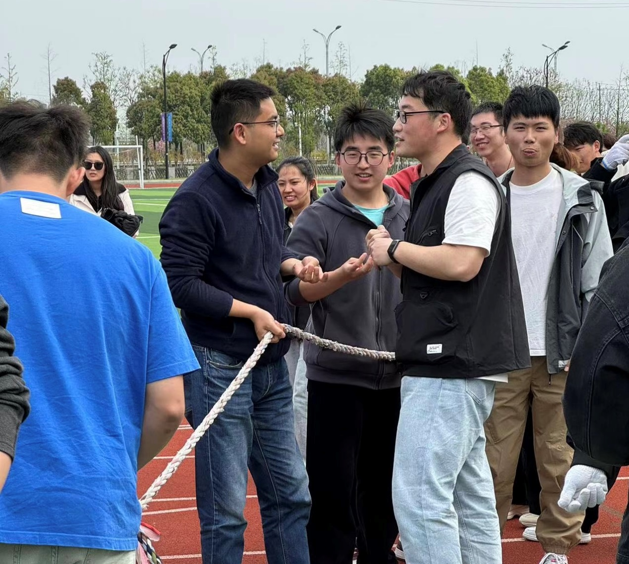 研究生会举办的“绳索拉动梦想,青春杨帆启航”第二届四向拔河比赛在东氿校区体育场开展,学院各团队研究生及学生导师积极参与。