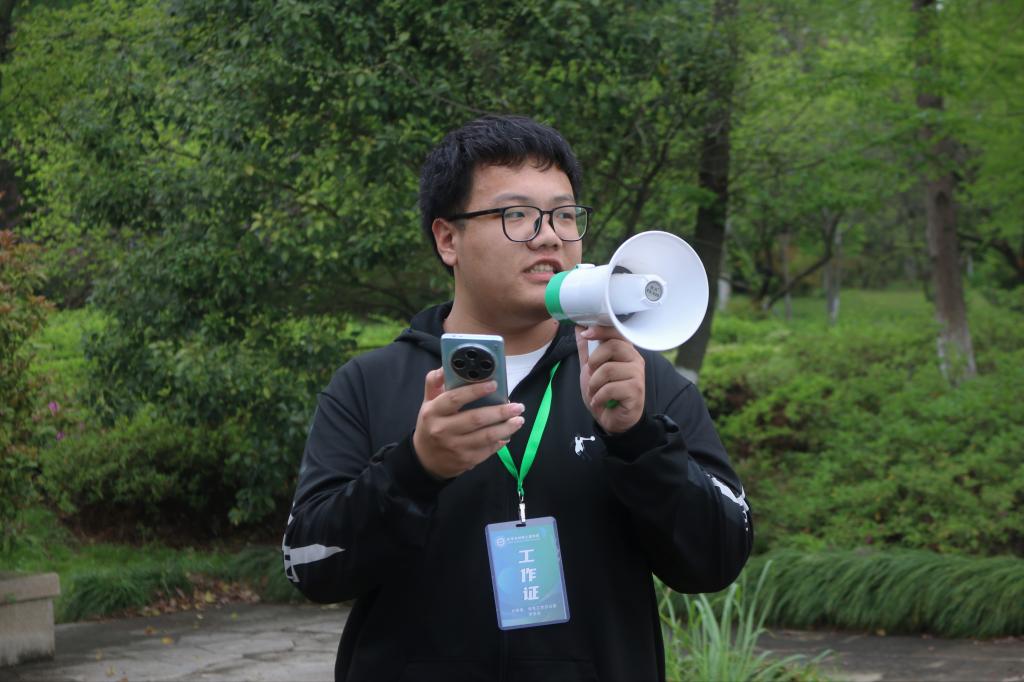 ,沿湖徒步欣赏蠡湖美景和江南春日风光。14日清晨,侯玉莹向参与学生介绍本次毅行拉练的路线和注意事项后,同学们按组列队,有序前行。