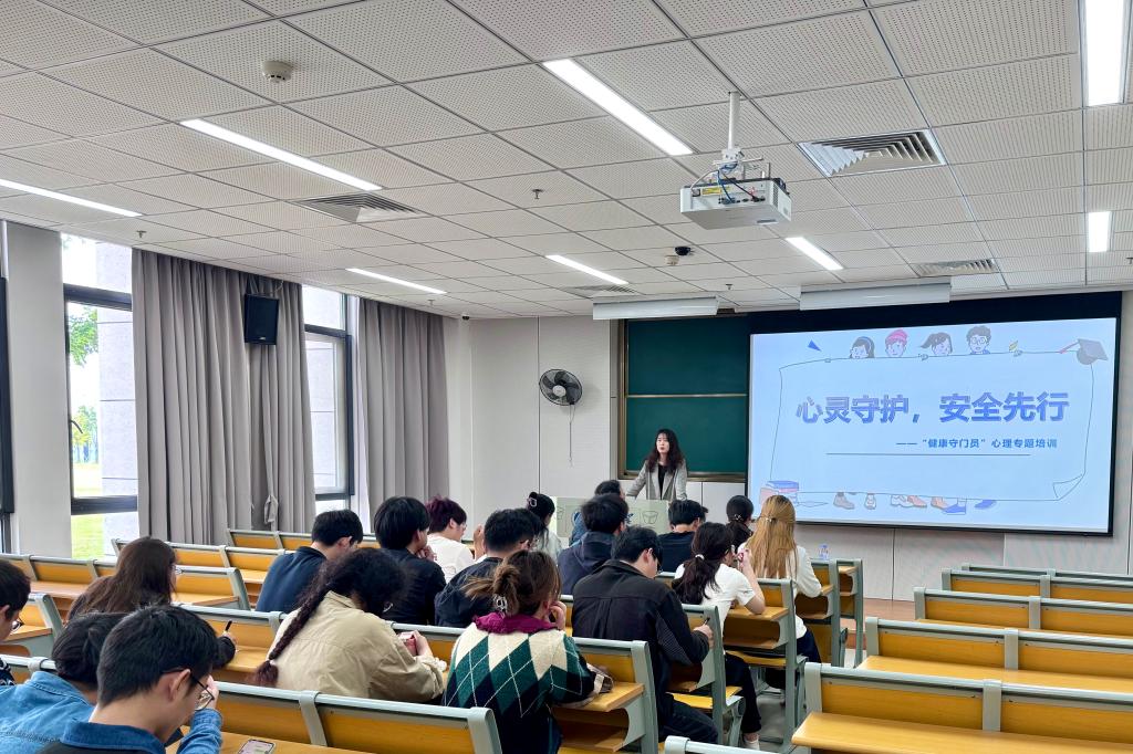 于4月29日下午在东氿校区知行楼C102教室举办“心灵守护,安全先行”健康守门员专题培训活动。本次培训活动分为三个主题,旨在通过专业讲解和实例分析,增强学生的心理健康、实验室安全意识以及反诈骗能力。