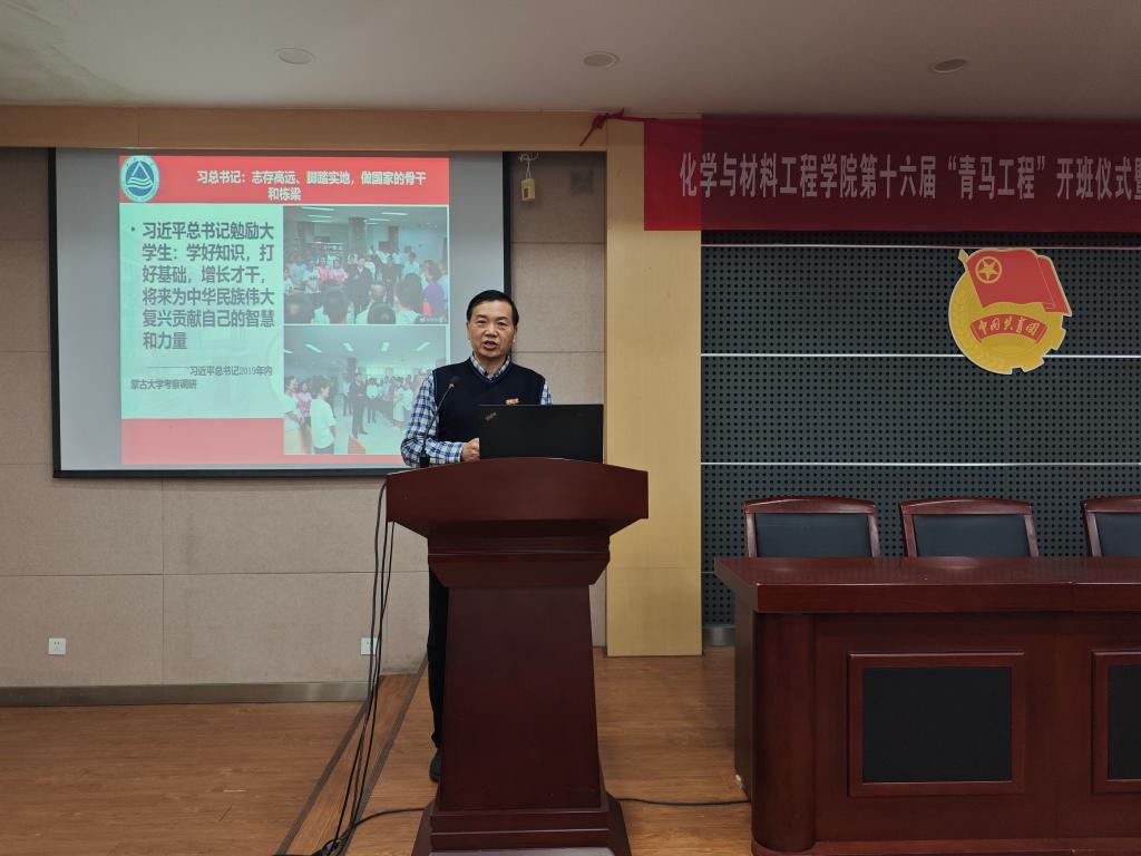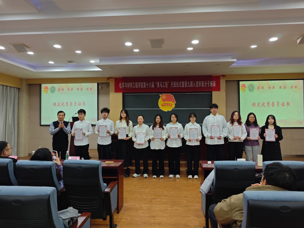 第十六届“青马工程”开班仪式暨第九期入党积极分子培训在化工楼B329会议室举办。学院党委副书记、副院长董霞,学院关工委委员、校特邀报告员、特邀党建组织员蒋平平、学工办主任兼分团委书记鞠峰,2021级本科生辅导员、党建辅导员郝林青,2024级本科生辅导员马之禾,第十五、十六届“青马工程”学员以及第九期入党积极分子150余人参加本次活动,活动由分团委学生副书记刘亦菲主持。