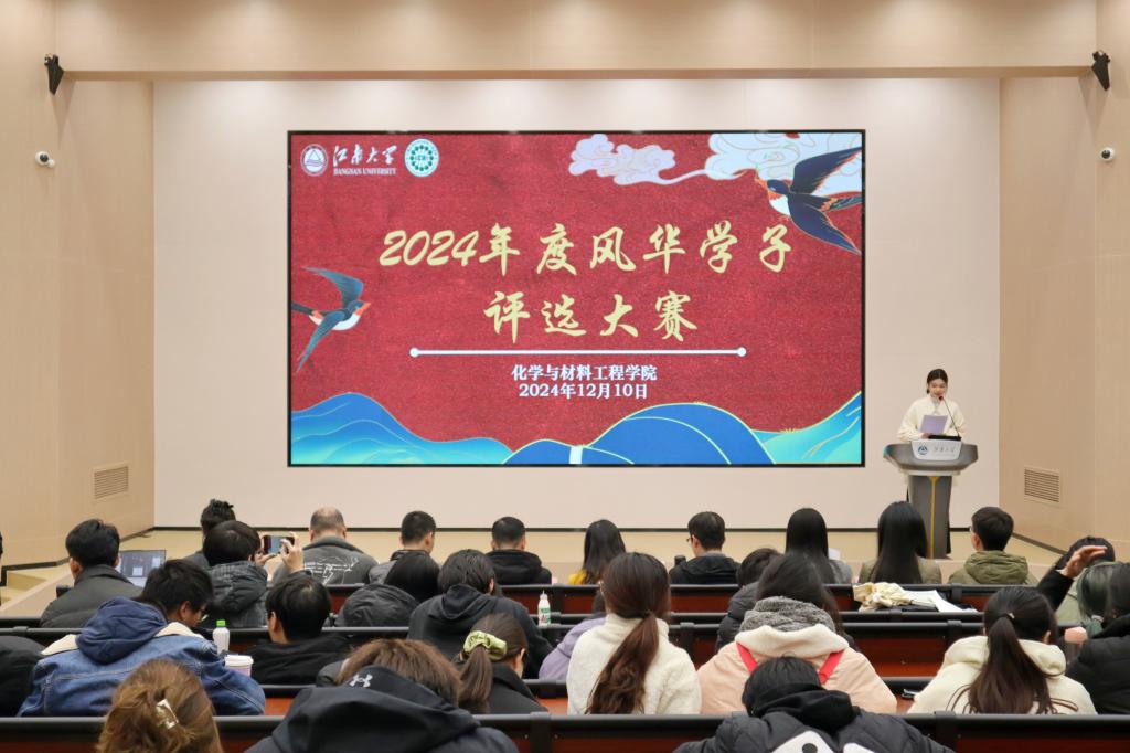 首先进行的卓汇菁英类竞选,李家豪等同学分享了他们在科研探索和党务工作中的卓越表现,展现了化院学子的理想追求与责任担当。他们的故事激励每一位在场的同学,传递勇于追梦的精神力量。在学研精进类展示中,赵伊等同学积极响应国家战略,立足科技前沿,勇于创新,在各自的领域取得丰硕成果。他们不仅展示了年轻学者追求卓越、勇攀高峰的精神风貌,还为同学们树立了学术研究的标杆。在坚毅追光类展示中,周康杰同学以其坎坷的求学经历和在科研中拼搏奋斗的故事,深刻诠释了“坚毅是拼搏的底色”。他用自己的经历勉励学弟学妹们在面对困难时保持坚定信念,勇敢向前,书写属于自己的辉煌篇章。在践行先锋类展示中,方承格等同学秉承开拓奉献的精神,积极参与学生工作和志愿服务,成为连接学院与学生的桥梁。他们不仅在日常学习生活中展现了优秀的领导和组织能力,更在实际生活中彰显了新时代青年的风采与力量。在文体风尚类竞选中,陈丹萍等同学在体育活动中表现出色,在市、校、院级比赛中取得佳绩,以拼搏进取的精神闪耀舞台。他们不仅个人成绩斐然,更带领团队屡获佳绩,摘得各级奖项。他们的表现充分展现了青年人应有的活力与激情,彰显了青春无畏、奋勇向前的精神风貌。