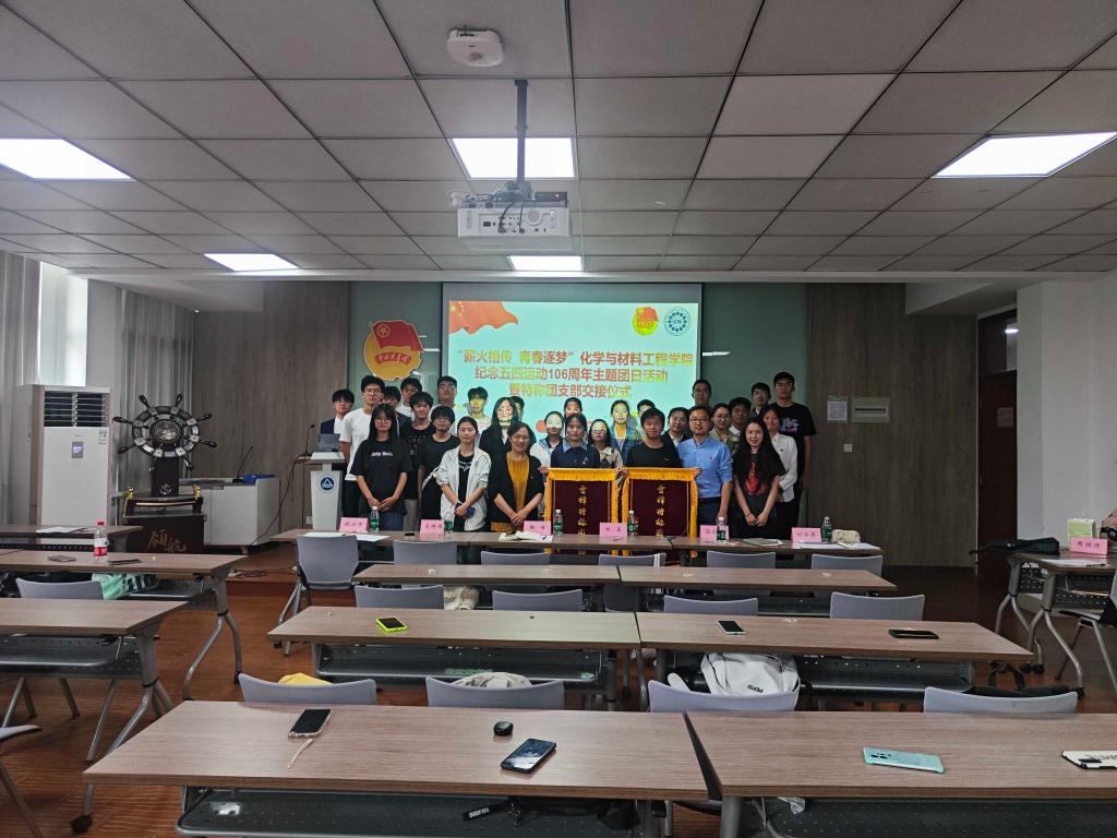 在化工楼A316会议室举办“薪火相传 青春逐梦”纪念五四运动106周年主题团日活动暨特称团支部交接仪式。学院关工委常务副主任刘玉、学工办主任兼分团委书记鞠峰、2024级本科生辅导员马之禾以及50余名团员青年代表齐聚一堂,共赴这场青春之约。