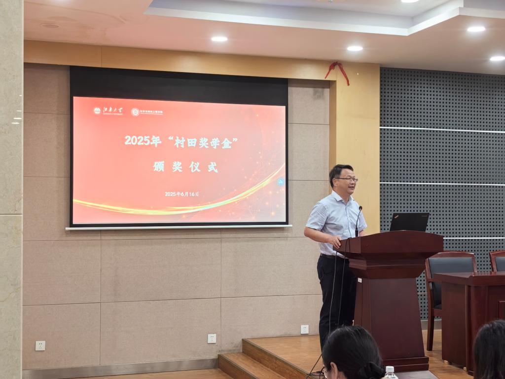 6月16日下午,我校在化工楼B329举行村田奖学金颁奖典礼。无锡村田电子有限公司董事长、村田新能源(无锡)有限公司董事长、总经理山崎俊信,村田新能源(无锡)有限公司副总经理小山正人,村田新能源(无锡)有限公司管理统括部统括部长丁玮等10位企业代表,8X8X