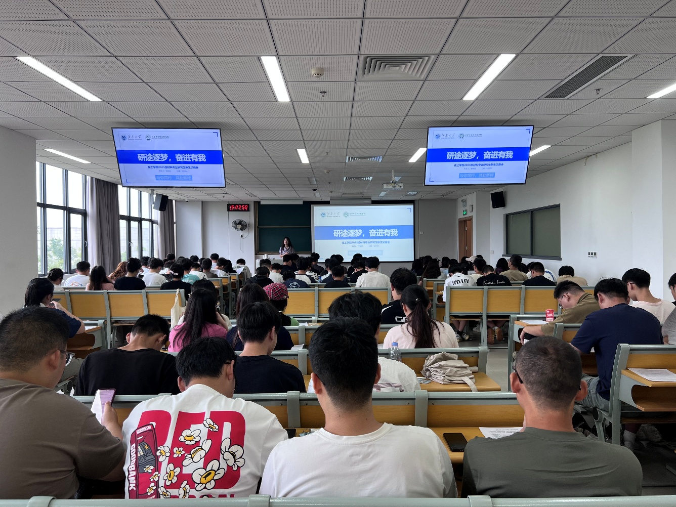 研究生辅导员李晓洁老师主讲,主题为“研途逐梦,奋进有我”,旨在帮助新生更好地适应研究生生活,明确未来三年的学习目标和规划。