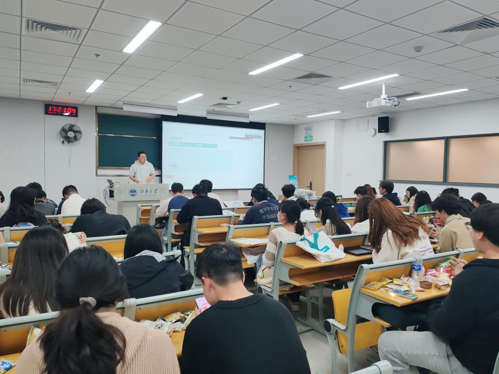 在蠡湖校区化工楼A316及东氿校区知行楼C306报告厅,举办青橙计划-科研技能提升营之SCI论文撰写专题讲座,学院近400名研究生通过线上线下相结合的方式共同参加了此次活动。本次讲座特邀抖音知识分享领域创作者、上海高校硕导陈斌老师担任主讲,科学指南针负责人苏慧老师主持。