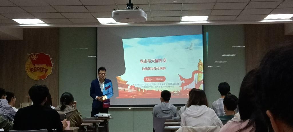 紧接着进行了青马训练营的理论课第一讲,孙晨光老师围绕“党史与大国外交”这一主题进行了讲解。从新中国刚成立的五十年代“一边倒”的局面;到八十年代“独立自主、不结盟”的两个重要转变;从二十一世纪初“全方位外交”,到新时代的外交成果;到新冠疫情影响下的外交格局。通过对外交史的回溯,与学员们一起回顾了党带领全国人民不懈努力的奋斗历程,带领学员们回顾了党带领全国人民从建立新中国到富起来强起来的辉煌历程。他用一个个详实的历史事实为全体学员讲了一堂精彩的党史课。