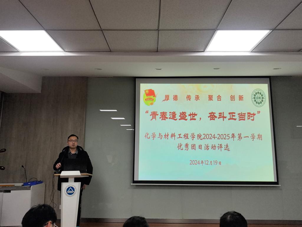 于12月19日在化工楼A316会议室举办2024—2025学年第一学期“青春逢盛世,奋斗正当时”优秀团日活动评选。学工办主任兼分团委书记鞠峰,2024级本科生辅导员马之禾,各班级团支书以及分团委全体成员参与此次活动。