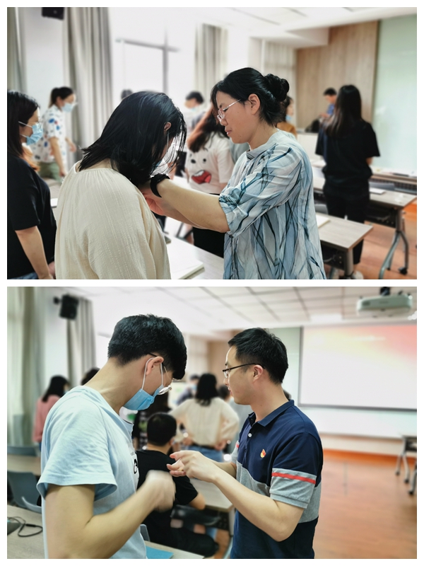 会上,学院党委副书记田卫平同志带领全体党员师生共唱《国际歌》,并郑重宣读全体新党员名单。随后,各学生党支部书记为全体预备党员一一佩戴党员徽章。学生党员代表王艺杰带领全体党员师生面向党旗郑重宣誓。2019级研究生周越同志作为预备党员代表发言,结合自己入党动机不断端正的过程,阐述了作为学生党员要不断学习科学文化知识、增强综合素质,进而肩负起新时代赋予青年的使命和责任;结合党领导全国人民坚强有力抗击疫情的过程,决心要时刻牢记党员身份,积极发挥模范带头作用,在党和国家需要的时候,挺身而出。