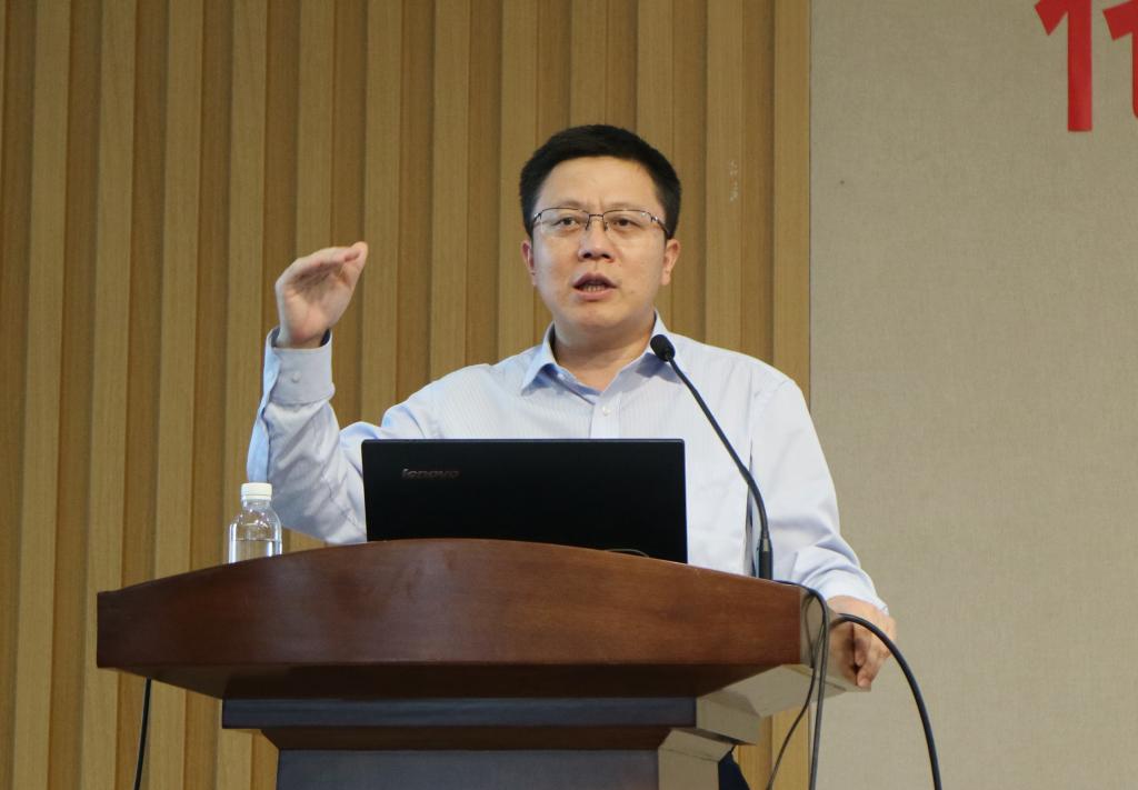 接着,化学工程系教授代表蒋平平上台讲话。蒋老师通过对比与举例,认为如今同学们的学习生活环境得以提高,并指出了大学的重要性,劝导同学们明确人生方向,珍惜当下时光,成为国之栋梁。