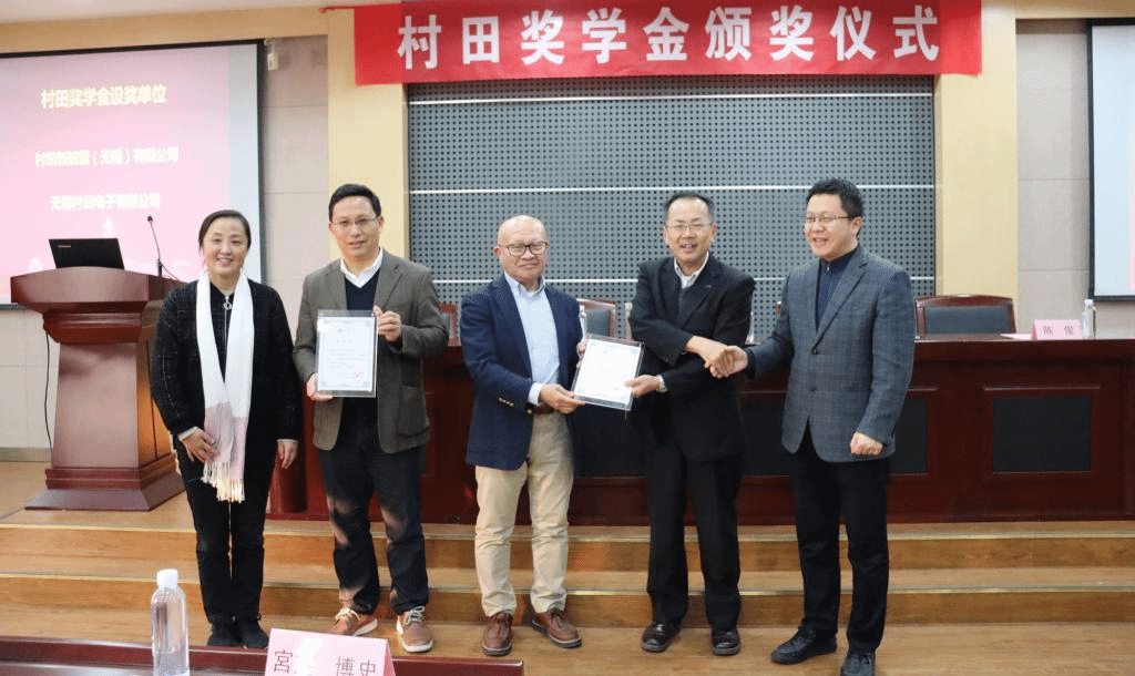 12月24日下午, “村田奖学金”颁奖典礼在化工楼B329举行。出席本次活动的嘉宾有:村田新能源(无锡)有限公司和无锡村田电子有限公司董事长野田慎治,村田新能源(无锡)有限公司副总经理辻篤,无锡村田电子有限公司管理统括部统括部长陈俊等无锡村田公司12位企业代表;机械工程学院党委书记高雪梅,院党委副书记方俊;8X8X