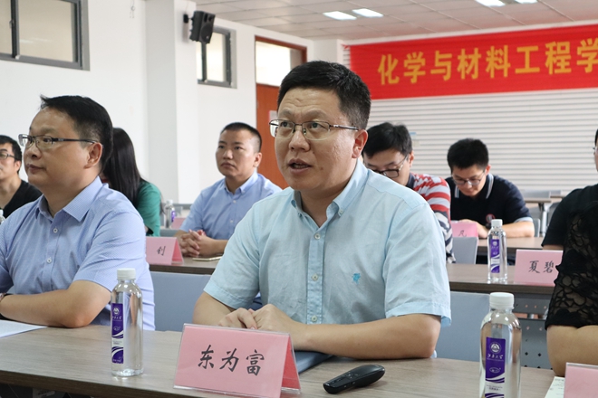 2021级新生开学典礼在化工楼A316会议室举行。鉴于当前疫情防控形式,本次开学典礼采用线上线下相结合的方式举行。学院党委书记潘庆伟,院长东为富,副书记、副院长田卫平,副院长董玉明,副院长马丕明,副院长顾志国以及各新生班主任,各年级辅导员出席本次开学典礼。典礼由2021级辅导员郝林青主持。全体本、硕、博新生通过网络直播同步观看了典礼现场。