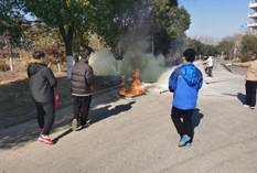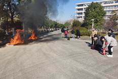 在协同创新大楼南侧空地的灭火作业演习现场,校保卫处消防科刘老师向大家详细介绍了干粉灭火器的使用方法,先拔出灭火器的栓销,一手抓稳把手,一手抬起喷嘴,在距离火源两米左右的位置,对准火源根部喷射。在随后的灭火实地演练中,学员们每八人左右一组分批次进行灭火操作。在刘老师的精心指导下,学员手持灭火器站到安全位置,手持喷嘴对准火苗,迅速将盆内明火扑灭。随着最后一组学员扑灭火焰,本次演习活动落下帷幕。