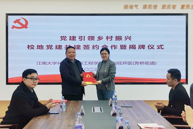 为进一步深化校地合作助力乡村振兴,开拓“田野思政”育人平台,提升“党建+思政+实践”育人实效,在学习贯彻习近平新时代中国特色社会主义思想主题教育之际,4月8日下午,学院党委与金兰村党总支党建共建签约暨实践基地揭牌仪式在金兰村举办,宜兴市芳桥街道党工委宣传委员李岳卿,宜兴市金兰村党总支书记、村委会主任蒋仲良,宜兴市芳桥街道党工委副书记、省派金兰村第一书记储东巍,学院党委副书记、副院长田卫平,副教授、宜兴市科技镇长团团员刘敬成,辅导员高静、郝林青、杭腾、李晓洁及2022级研究生党支部委员参加活动。会议由储东巍主持。