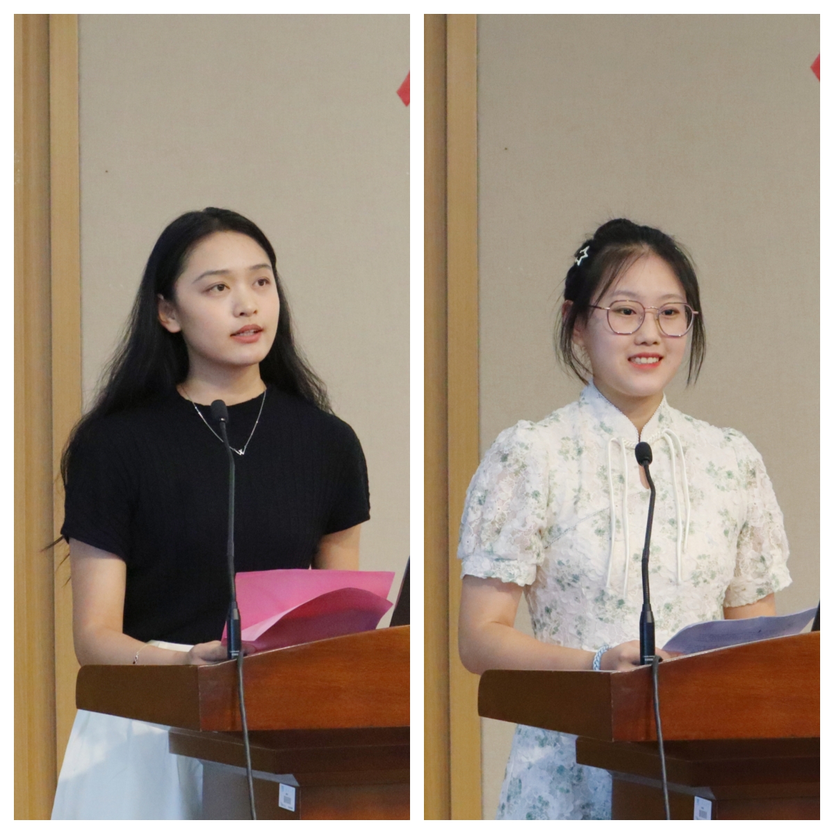 教师代表娄阳教授上台发言。他表示,自信源于实力,实力源于努力。他鼓励新生要敢想敢为,善作善成,用奋斗写好青春诗篇。之后,在读学生朱明月、新生代表杨羽彤分别上台发言。