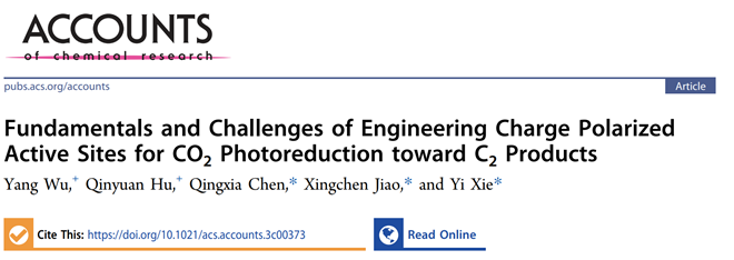 近期,焦星辰教授、陈庆霞副教授与中国科学技术大学谢毅院士合作,在光还原CO2催化剂材料设计方面发表重要综述论文,相关工作在化学三大综述期刊之一“Accounts of Chemical Research”上发表:“Fundamentals and Challenges of Engineering Charge Polarized Active Sites for CO2Photoreduction towards C2Products”。Accounts of Chemical Research是美国化学会旗下的国际著名期刊,是国际上最具权威性的综述性期刊之一,旨在介绍化学、生物化学、材料科学、纳米科学等相关研究领域的最新研究进展。该刊物不同于一般的综述性期刊,它具有鲜明的“自我综述”的特色,主要是描述通讯作者自己的系统性研究工作,并且要对该领域的未来发展方向给出视野独特、具有前瞻性的展望。在Accounts of Chemical Research上发表学术论文,是作者所开展的研究工作具有系统性、创新性和重要国际影响力的标志之一。这是8X8X