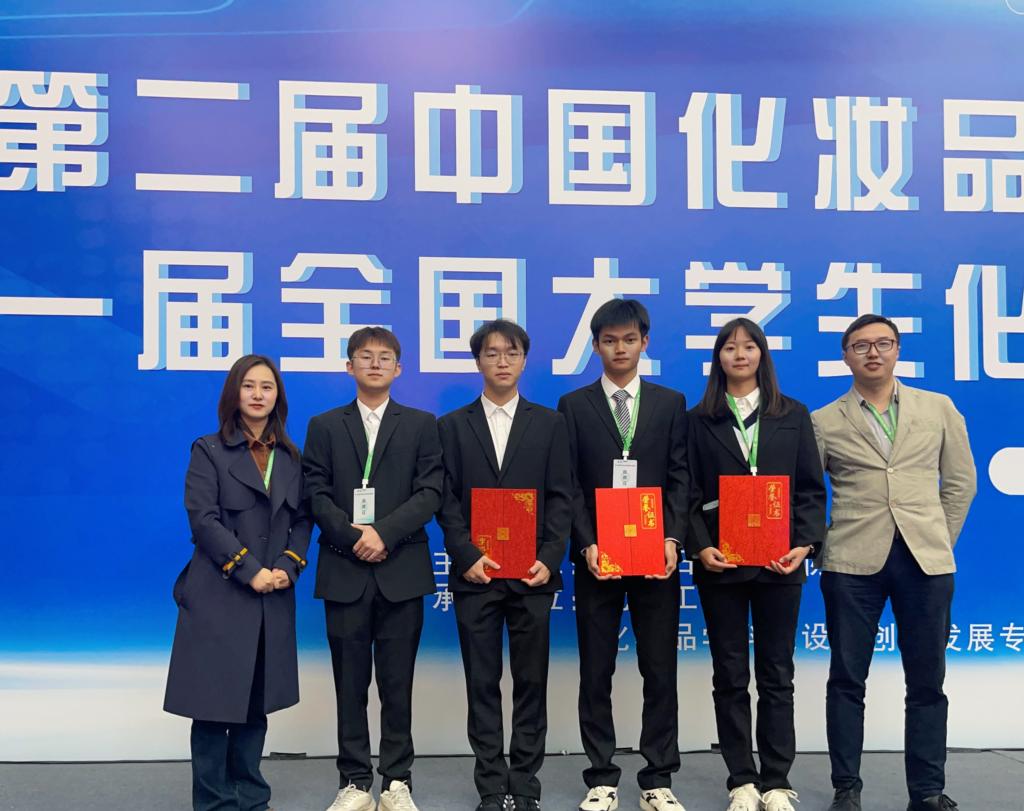 的三支队伍通过精心准备和赛前预答辩演练等准备工作,取得了优异成绩。其中,“青春控油喷喷乳”项目(参赛队员:汤佳杰、滕欣瑶、张琼、胡馨月、李俊贤,指导老师:陈凤凤、洪流)在配方设计组获得了国家一等奖,“基于微流控技术制备的无乳化凝珠美白精华液”项目(参赛队员:刘羽纯、石宇萌、刘静、畅贝哲、周昱成,指导老师:杨成、陈凤凤、刘春环)在配方设计组获得了国家二等奖,“头皮防晒防脱精华乳”项目(参赛队员:陈思雨、高持恒、喻文莘、吴家驹,指导老师:王靖)在产品创意组获得了国家二等奖。此外,陈凤凤、洪流老师获得优秀指导教师,8X8X