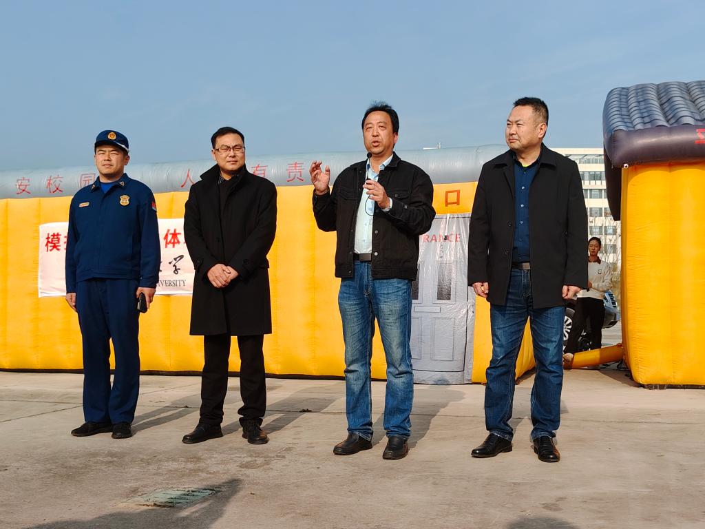 学校消防维保单位负责人,带领学生进行灭火、烟雾逃生等模拟训练,将知识性和趣味性融为一体。消防救援大队官兵,为学生讲解现场消防水泡车、应急救援车的结构和功能、装备的使用,并让学生上车实际体验,同学们兴致盎然。在灭火演练场地,官兵们讲解了有关火灾现场的应急处置,灭火器的使用原理以及相关的注意事项,牢记灭火关键步骤和要领。在认真听讲及观摩后,参加演练的师生分批亲自体验了现场灭火的过程,面对熊熊燃烧的火堆,教师和学生们表现得十分沉着,熟练地按照灭火的步骤和方法,将汽油燃起的浓烟大火成功的迅速扑灭。最后,消防救援大队官兵还到访了知行楼实验室、宿舍区等人员密集、消防安全重点场所部位,实地查看校区消防设施条件建设和物资配备情况,为学校消防安全工作把脉,加强学校和地方的交流合作。