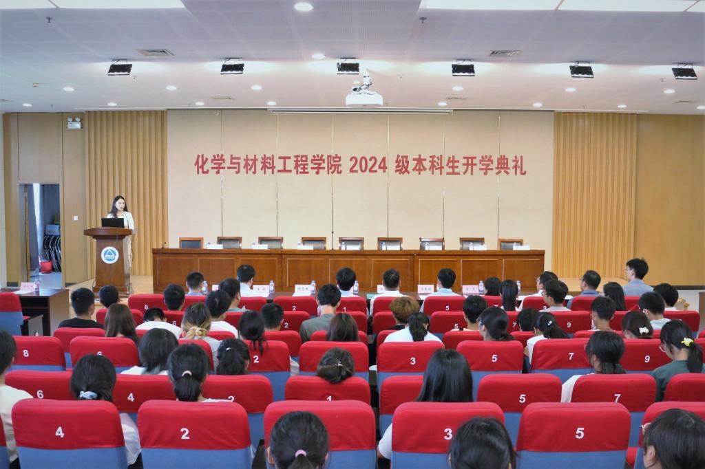 2024级本科生开学典礼暨开学第一课在图书馆305报告厅举行。学院党委书记潘庆伟、院长刘仁、党委副书记兼副院长董霞、副院长顾志国、副院长马丕明、副院长王靖、各系主任、教师代表、新生班主任、各级辅导员以及2024级全体本科生出席活动。典礼由2024级本科生辅导员马之禾主持。