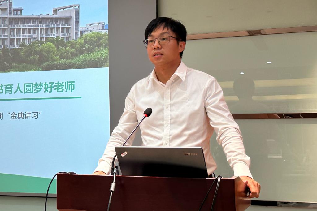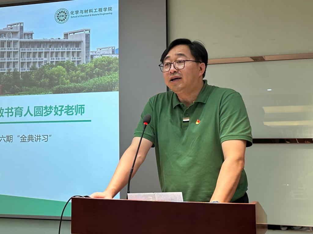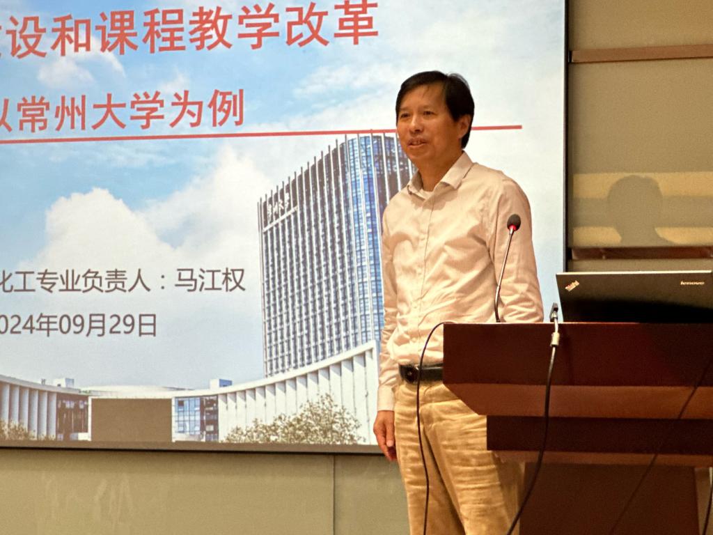 本次“金典讲习”活动围绕专业与课程建设、科研与团队拓展、卓越教学等方面进行了深入研讨。常州大学环境科学与工程学院院长、国家“万人计划”领军人才马江权教授作题为《化工专业建设和课程教学改革——以常州大学为例》的报告。他从化工专业发展、专业建设与改革、课程建设与改革、人才培养成效、个人成长等五个方面进行介绍,他勉励青年教师要爱岗敬岗,深扎专业,与时代同向,与学校同行。“全国五一奖章获得者”、享受国务院特殊津贴专家、8X8X