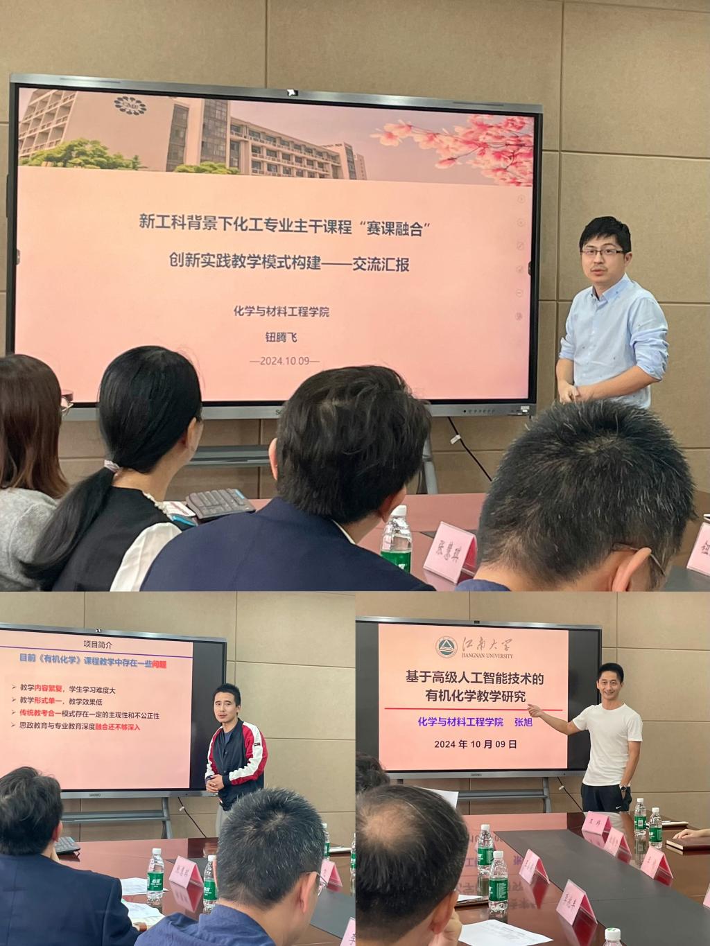 随后,汪洋、钮腾飞、张旭三位教师代表分别就学院教改项目中的自由选题类、赛课融合类、公共基础课类进行了汇报,分享了各自项目的建设理念与最新进展。