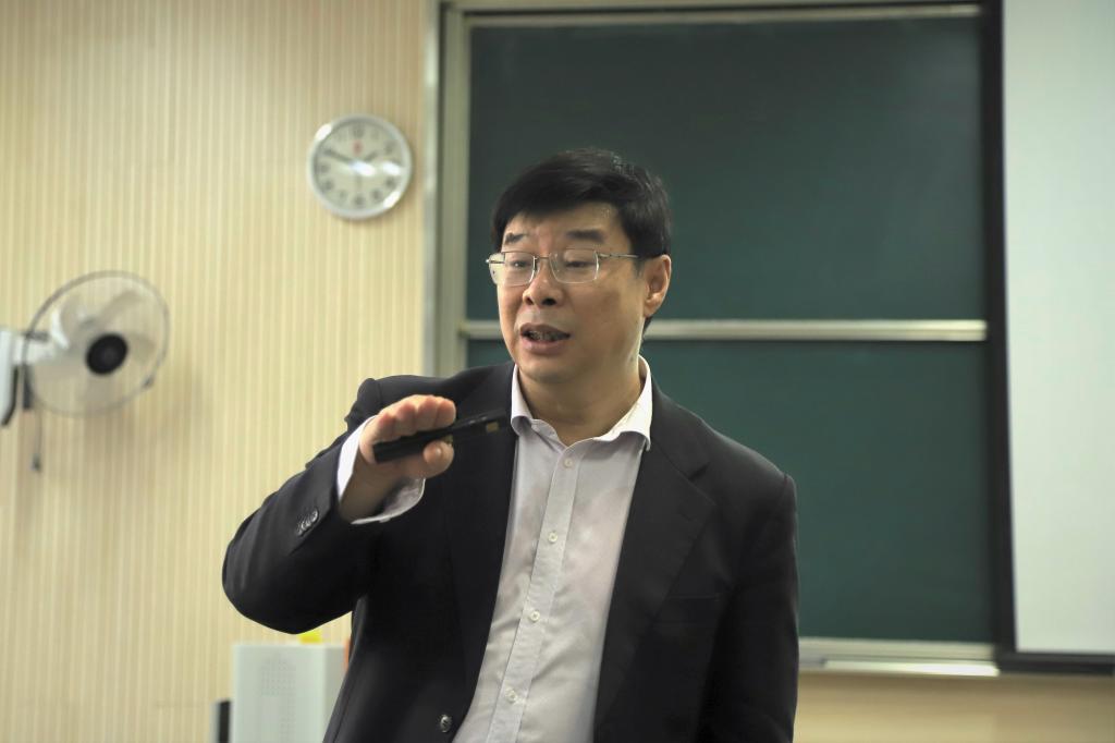 黄建滨指出,胶体与界面化学所研究的领域与物理学、生物学、材料科学等学科交叉重叠,重视的是质点尺寸而非化学组成。从某种角度而言,胶体化学是大分子与细分散多相体系的科学。“大师们在一瞬间冒出来的顿悟,最后在结果上造就了人类文明的进步。”在介绍胶体与界面化学的发展中,他以爱迪生、牛顿、列文虎克等科学家的“顿悟”为引,用生动的例子与独到的见解深刻阐述“顿悟”的力量。最后他给在场同学提出三点科研建议,第一,要在科研中保持理性;第二,面对科学领域中问题,应目标明确、切中要害;第三,要葆有科研热忱,坚定前行。