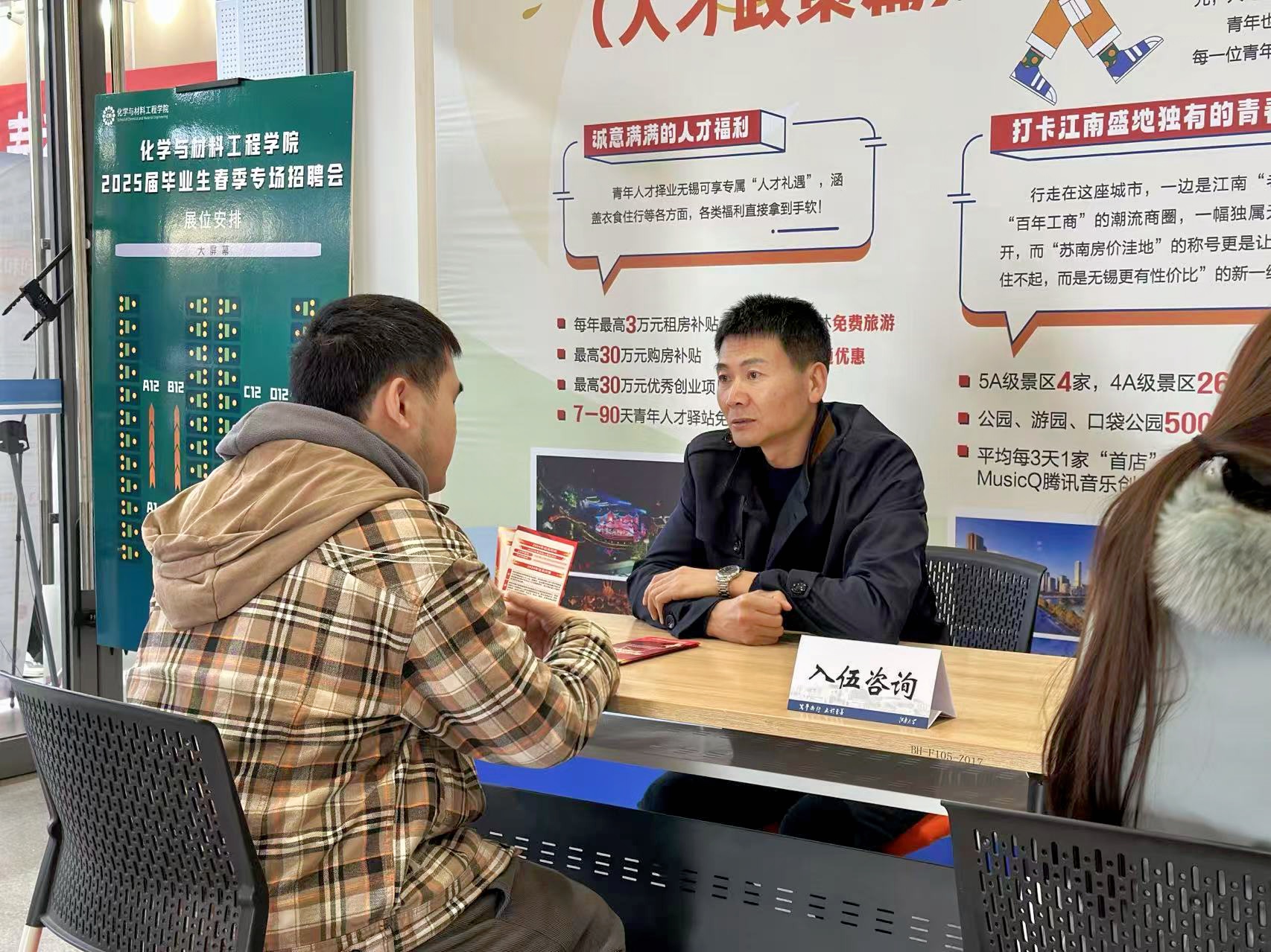 本次招聘会共设展位48个,吸引了多家优质企业参会,提供涵盖应用胶体与界面化学、化妆品、催化新技术、功能材料、高分子材料和涂层材料等领域的岗位300余个,招聘专业涉及应用化学、高分子材料与工程、化学工程与工艺、材料科学与工程、材料工程、化学工程与技术、化学工程、材料化学,吸引了学院200余名学生到场咨询应聘,现场气氛热烈。