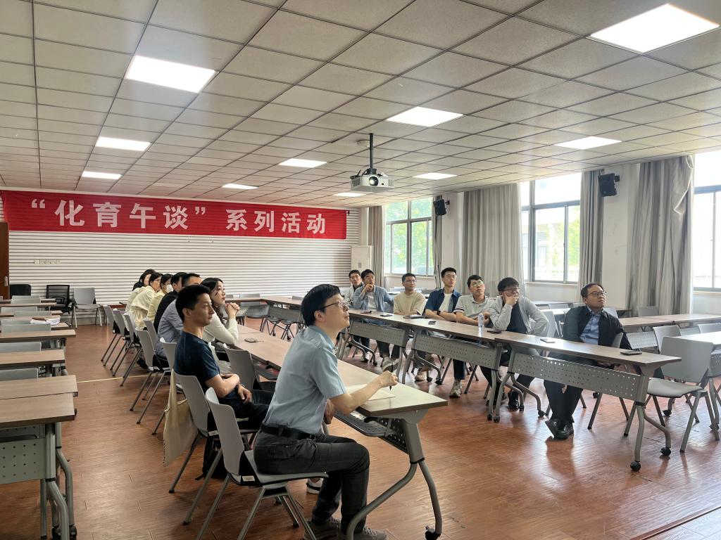 第二期“化育午谈”暨青年教师教学竞赛交流会在化工楼A316举行。本次活动邀请校青年教师教学竞赛特等奖获得者杜立永副教授做专题分享,学院20余名青年教师踊跃参与本次活动。本次活动由教学副院长王靖主持。