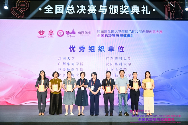 四支队伍表现卓越,一举斩获1项总冠军(一等奖第1名)、2项一等奖和1项二等奖的优异成绩,学院也获得优秀组织单位称号。其中,“健”油!胶原团队获得原料创新研究生组总冠军(指导教师:杜立永),江南战“痘”团队获得配方设计大学生组一等奖(指导教师:王靖,晏晓东),专业团队获得配方设计大学生组一等奖(指导教师:王靖,常宽),不长皱纹的橙留香团队获得原料创新大学生组二等奖(指导教师:杜立永,杨井国)。