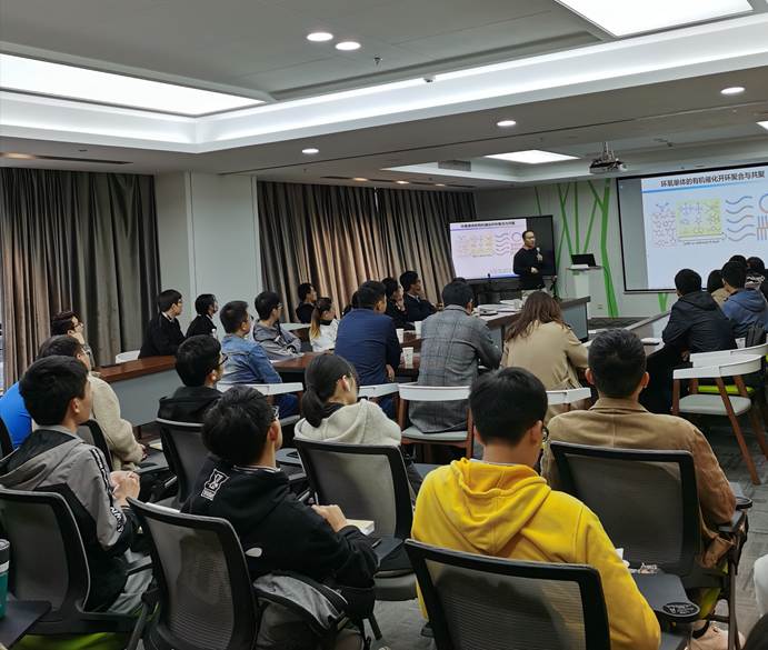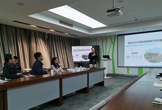 协同创新中心二楼会议室作了主题为“有机小分子催化的阴离子开环聚合”的学术报告,化工学院刘仁教授主持了该场报告。赵俊鹏教授首先对有机/无金属催化的聚合反应进行简要介绍,指明其在高分子合成方法学科领域的重要价值,随后从单组份(强碱型)有机催化剂和双组份(Lewis酸碱型)有机催化剂两个方面着重讲述了环氧单体的有机催化开环聚合与共聚方法。赵俊鹏教授提到,由于强碱型单组份催化剂的局限性,双组份有机催化剂的应用前景更为广泛。最后,赵俊鹏教授结合目前研究的课题内容,从高效可控的环氧单体开环聚合、环氧与环酯单体的序列可逆串联共聚、环氧与环状酸酐的序列选择性共聚、羧酸酯化聚醚的选择性合成以及双端异官能化聚醚的精巧合成五个方面证实了双组份有机催化剂在环氧单体开环聚合中的优势。报告结束后,赵俊鹏教授与参会老师和学生进行了深入的交流研讨,并对提出的问题作出了详细的解答。