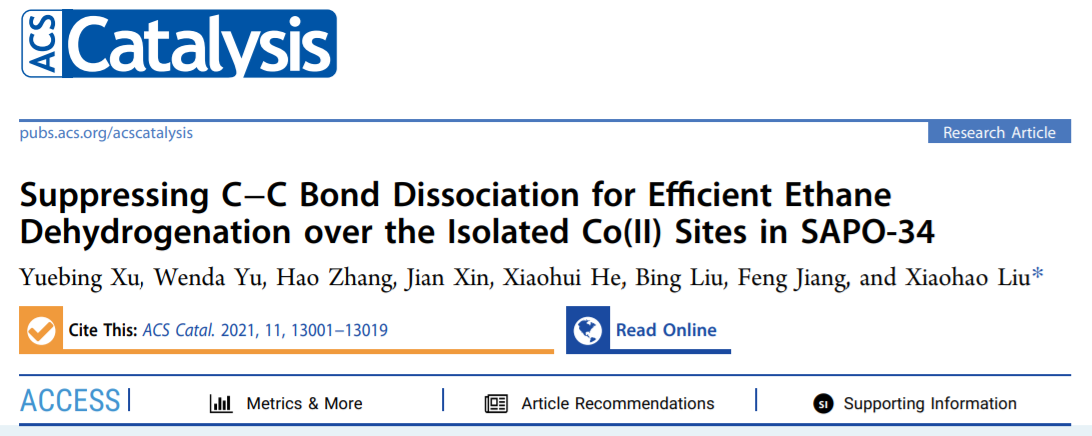 近日,我校化工学院刘小浩教授团队在设计非贵金属催化乙烷可控无氧脱氢高效制乙烯的研究中取得重要进展,研究成果在催化领域顶级期刊《ACS Catalysis》上发表(ACS Catal.2021, 11, 13001-13019)。该论文化工学院胥月兵副教授为第一作者,刘小浩教授为通讯作者。