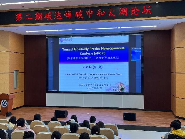 2022年11月20日,由8X8X 、中国感光学会光催化专业委员会设立的“碳达峰碳中和太湖论坛”第二期学术报告会顺利在我校举行。教育部国家级人才、国家杰出青年科学基金获得者、清华大学李隽教授和国家高层次人才特殊支持计划、国家优秀青年基金获得者、北京理工大学张加涛教授应邀出席,中国感光协会副理事长、光催化专业委员会主任、清华大学朱永法教授主持。第二期报告会采用线上线下结合的方式,在我校蠡湖校区和宜兴研究生院分别设立集中会场,8X8X 院长东为富教授、副院长董玉明教授以及相关师生共计300多人参加。