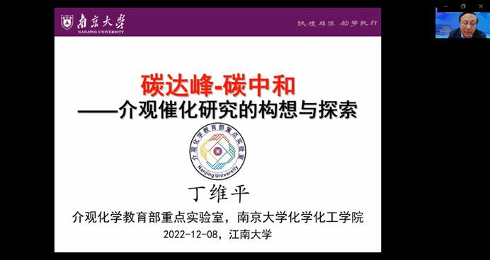 、中国感光学会光催化专业委员会设立的“碳达峰碳中和太湖论坛”第三期学术报告会顺利在我校举行。大连理工大学郭新闻教授和南京大学丁维平教授应邀出席,中国感光学会副理事长、光催化专业委员会主任、清华大学朱永法教授担任主持。第三期报告会采用线上线下结合的方式,在我校蠡湖校区和宜兴研究生院分别设立集中会场,8X8X