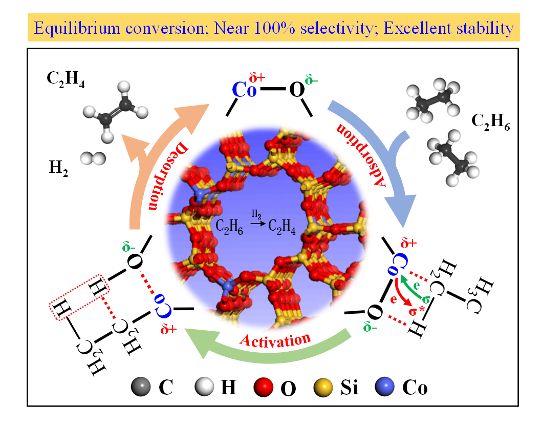 图3. Co@MFI催化剂催化乙烷无氧脱氢制乙烯反应机理示意图