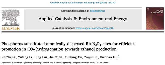 化工学院刘小浩教授团队在构建P-Rh位对(Site Pair)活性中心高效催化CO2加氢制乙醇的研究工作中取得重要进展,这一研究成果在催化领域权威期刊《Applied Catalysis B: Environment and Energy》上发表。该论文化工学院博士研究生郑珂为第一作者,刘小浩教授为通讯作者。