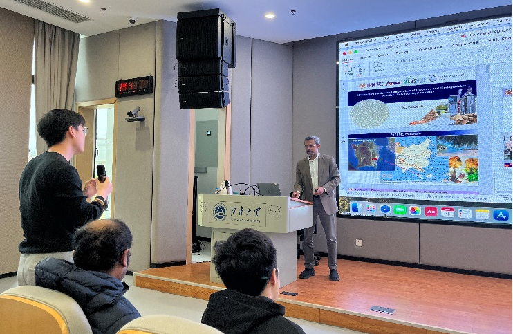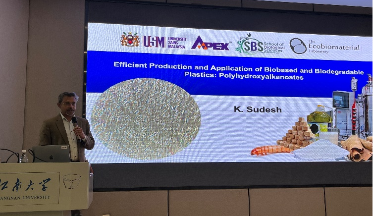 Kumar Sudesh教授作了题为“Efficient Production and Application of Biobasedand Biodegradable Plastics: Polyhydroxyalkanoates”的报告,介绍了一种生物基来源的通过细菌发酵的可生物降解高分子,从细菌的种类和发酵原料以及发酵过程,详细阐述了聚羟基脂肪酸酯的制备;并讨论了在不同配比下,聚羟基脂肪酸酯的结晶和机械性能的影响,同时深刻探讨了聚羟基脂肪酸酯在不同环境下(如泥土、海水、去离子水等)生物降解的过程。Kumar Sudesh教授的报告引起了在座师生的积极交流和讨论,讲座交流气氛热烈,师生们纷纷表示受益匪浅。