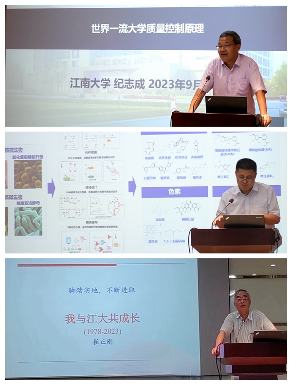 本次“金典讲习”活动围绕“大师引领”“朋辈激励”“工匠传承”等三方面展开。原副校长、国家级人才项目获得者纪志成教授作题为《世界一流大学质量控制原理》的报告。他从“构建一流学生的培养机制”“构建一流课程的建设机制”“构建一流成果的产出机制”“构建一流教师的发展机制”“构建一流治理的保障机制”等五个方面,结合个人研究思考和大量国内外案例,对一流大学质量控制要点进行了详细解读。他勉励青年教师深入思考,明确个人目标,挖掘自身潜能,在工作中收获成长和进步。未来食品科学中心副主任、教育部国家级人才项目入选者周景文教授结合在8X8X