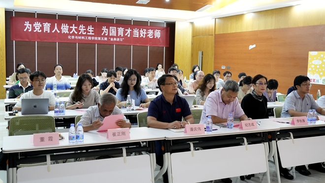 学院党委书记潘庆伟作活动总结。他指出,教师是立教之本、兴教之源。习近平总书记致信全国优秀教师代表强调,大力弘扬教育家精神,牢记为党育人、为国育才的初心使命,为强国建设、民族复兴伟业作出新的更大贡献。青年教师是学院事业发展的主力军,是学院改革创新的宝贵财富。学院连续五年举办“金典讲习”品牌活动,旨在通过讲议研习,搭建新教师成长实践交流的平台,共话教书育人、立德树人、科学研究等事业命题,进一步推动新教师实践立德树人、科研报国、服务社会的初心和使命。学院历来重视青年教师的成长发展,通过打造青年教师成长基地等,帮助青年教师提升专业素养和学术造诣。本次活动的三位主讲人有激情、有斗志,朴实、真诚,三场报告视野开阔、内容丰富、深入浅出,既有政治高度,又有理论深度,既有思想引领,又有专业指导,既有成长感悟,又有奋斗实践,希望各位青年教师以本次活动为契机,进一步落实“立德树人”根本任务,继承发扬学院优良文化传统,砥砺奋进、担当作为,助力实现学院和学科跨越,学术和学者提质,学生和学风出彩,为学校“奋进计划”的实施贡献化工力量。
